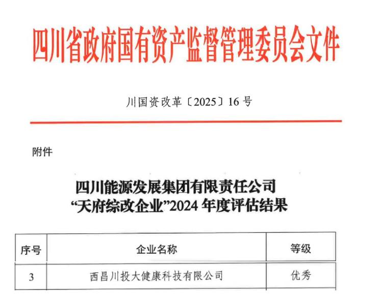 川投西昌大健康公司自2022年成功入選四川省第二批天府綜改企業(yè)以來,以“天府綜改行動(dòng)”為契機(jī),深入實(shí)施國企改革深化提升行動(dòng),連續(xù)三年獲評(píng)“優(yōu)秀”。