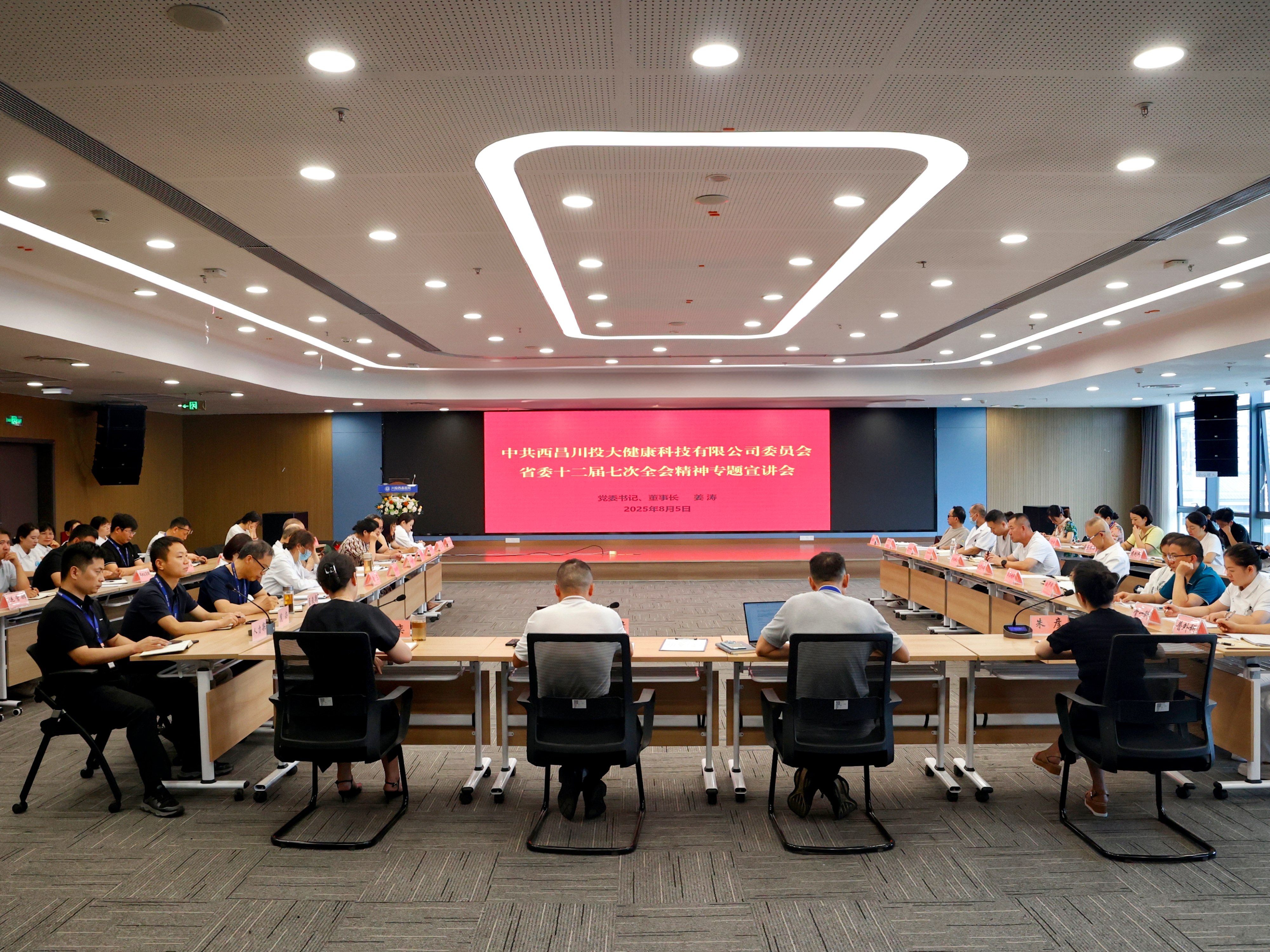 2025年8月5日,川投西昌大健康公司黨委組織召開省委十二屆七次全會(huì)精神專題宣講會(huì)。黨委書記、董事長(zhǎng)姜濤從全會(huì)的重大意義、全會(huì)的主要特點(diǎn)與核心精神、全會(huì)精神對(duì)醫(yī)院和康養(yǎng)產(chǎn)業(yè)發(fā)展的具體指引以及切實(shí)抓好全會(huì)精神的貫徹落實(shí)等四方面進(jìn)行了宣講。