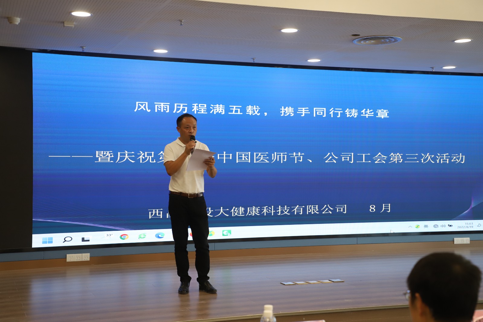 為了進(jìn)一步提高全體員工凝聚力,傳遞對醫(yī)務(wù)工作者的關(guān)心,8月19日,公司舉行了主題為“風(fēng)雨歷程滿五載,攜手同行鑄華章”工會暨醫(yī)師節(jié)文藝匯演活動。