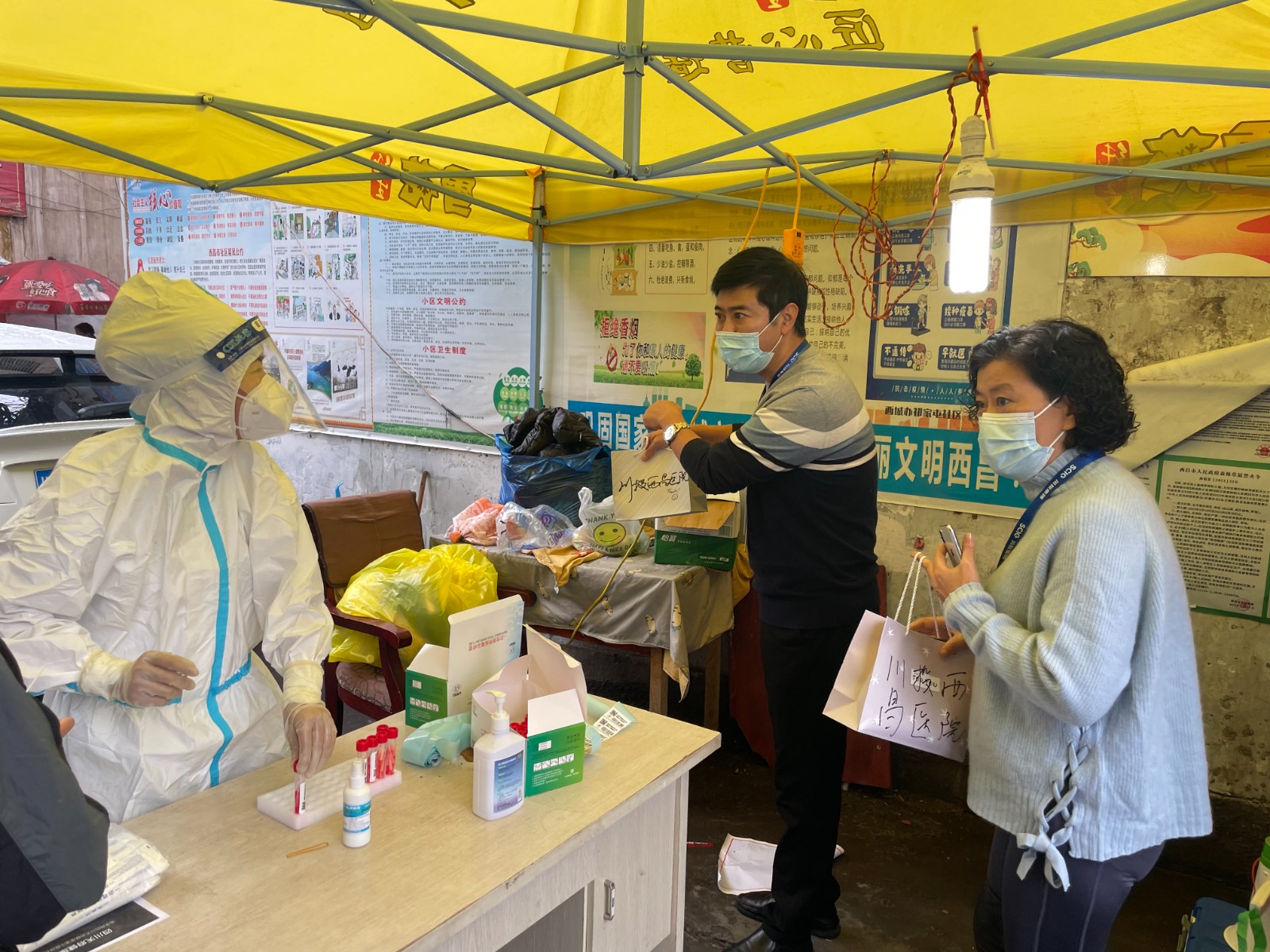 當(dāng)然,也有一些細(xì)心的市民,從他們防護(hù)服上“川投西昌醫(yī)院”的字樣上知道了他們身份,因此倍感溫暖、更添信任。這些市民在連聲道謝的同時(shí),也表達(dá)出發(fā)自心底的認(rèn)可:“你們是來(lái)自醫(yī)院的專業(yè)志愿者,有你們?cè)冢覀兏杏X(jué)更安心”。