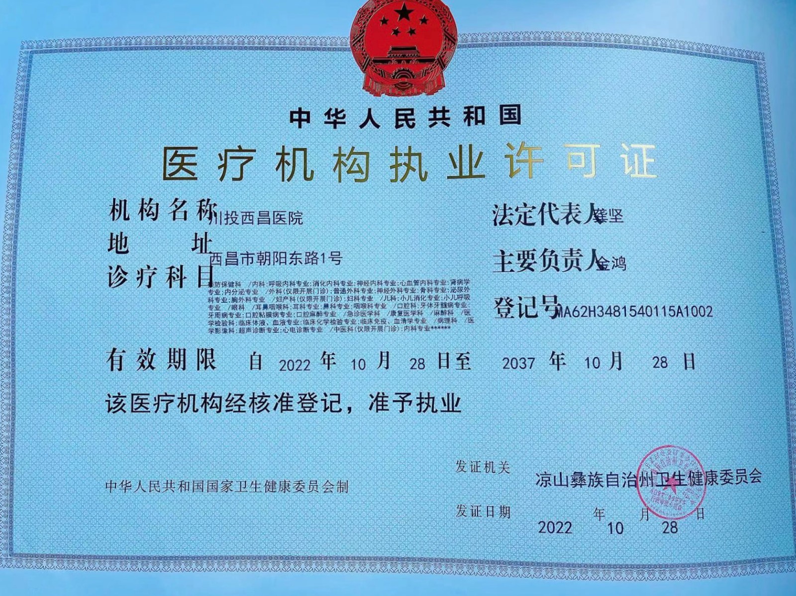 在涼山州、西昌市黨委政府和集團(tuán)公司的大力支持,經(jīng)過來自全國各地的醫(yī)院全體員工的不懈努力下,醫(yī)院10月28日取得了涼山州衛(wèi)健委頒發(fā)的醫(yī)療機(jī)構(gòu)執(zhí)業(yè)許可證,醫(yī)院運(yùn)營籌備工作實(shí)現(xiàn)從負(fù)到零,為醫(yī)院11月3日正式開業(yè)奠定了堅(jiān)實(shí)基礎(chǔ)。