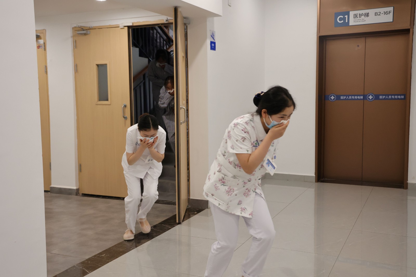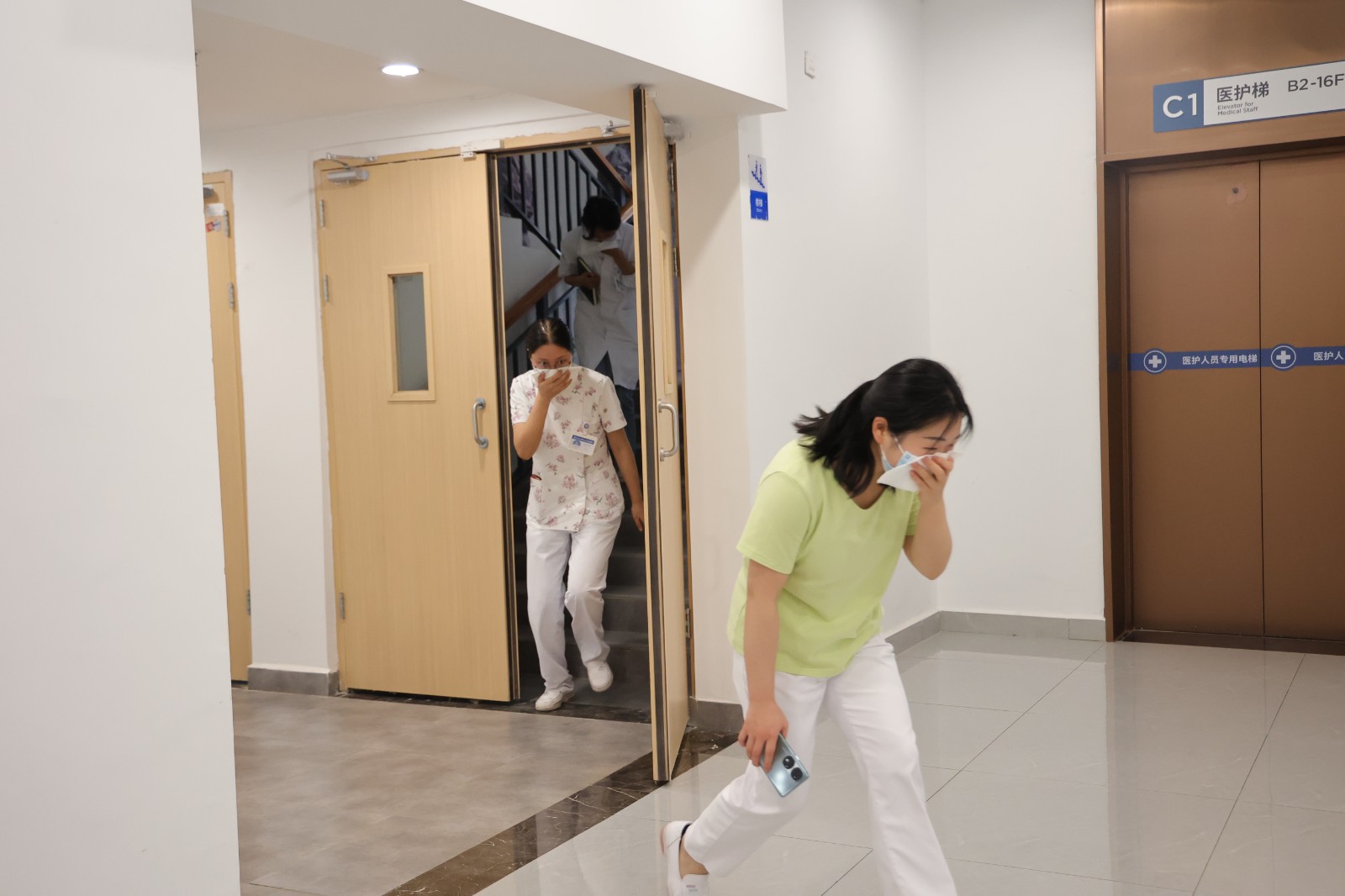 下午16:00,接消防控制室報(bào)告:醫(yī)院某樓層發(fā)生火災(zāi),火勢(shì)較大,現(xiàn)場(chǎng)有人員被困,醫(yī)院義務(wù)消防隊(duì)已趕赴現(xiàn)場(chǎng)處置,根據(jù)現(xiàn)場(chǎng)火情立即啟動(dòng)《滅火疏散應(yīng)急預(yù)案》,本次實(shí)戰(zhàn)演習(xí)正式拉開序幕。