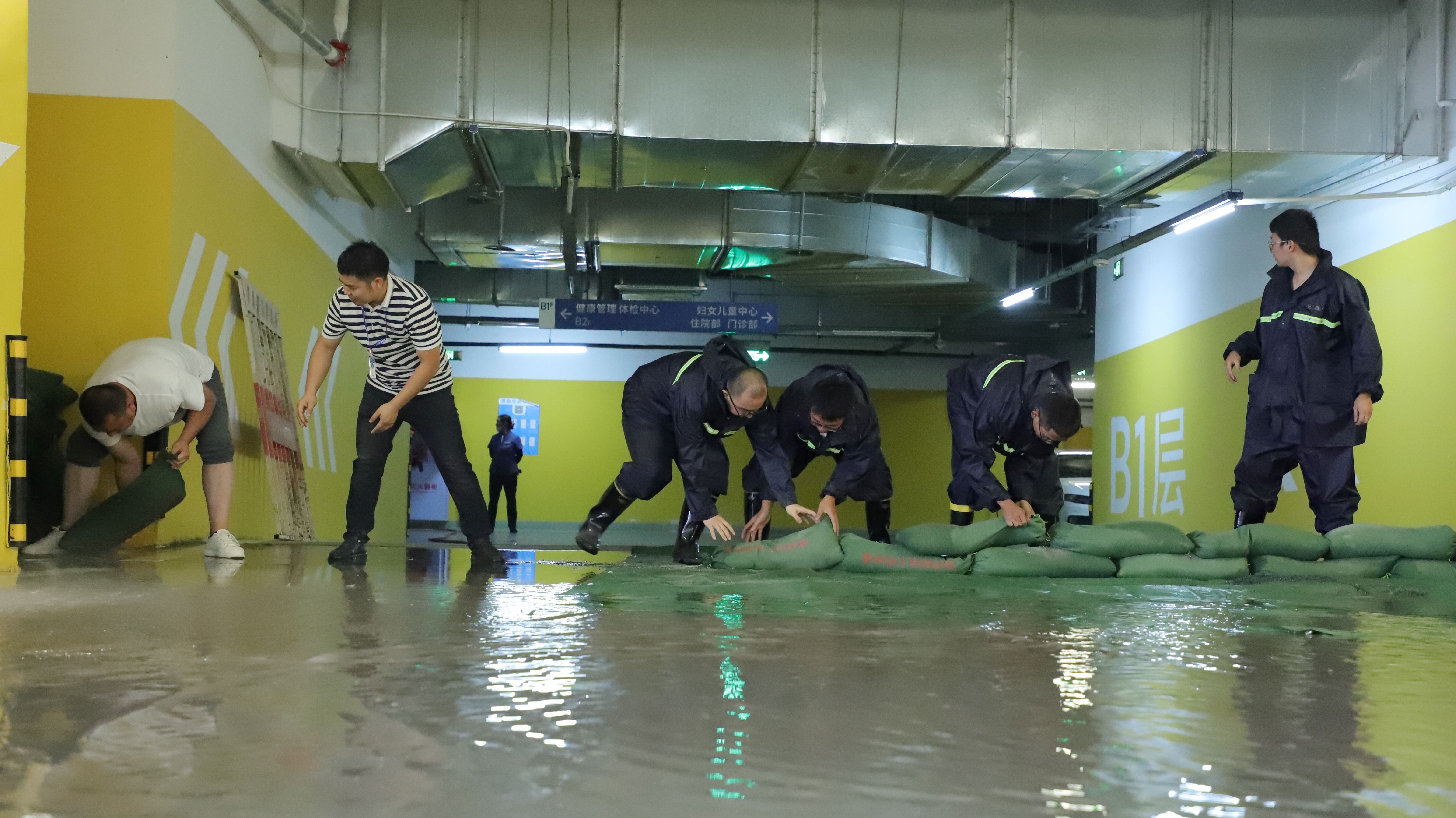 會(huì)后,實(shí)地開(kāi)展了防汛減災(zāi)應(yīng)急演練。本次演練模擬醫(yī)院所在地區(qū)遭遇暴雨天氣,雨量較大,醫(yī)院負(fù)一樓停車場(chǎng)發(fā)生雨水倒灌且有人員被困的情況,醫(yī)院立即啟動(dòng)防汛應(yīng)急預(yù)案。根據(jù)演練方案各自分工,迅速完成現(xiàn)場(chǎng)警戒、人員疏散、病患現(xiàn)場(chǎng)救治、防水墻搭建、重點(diǎn)設(shè)備巡檢、物資庫(kù)房巡視、防疫消殺等各節(jié)點(diǎn)任務(wù),順利完成防汛應(yīng)急演練目標(biāo)任務(wù)。
