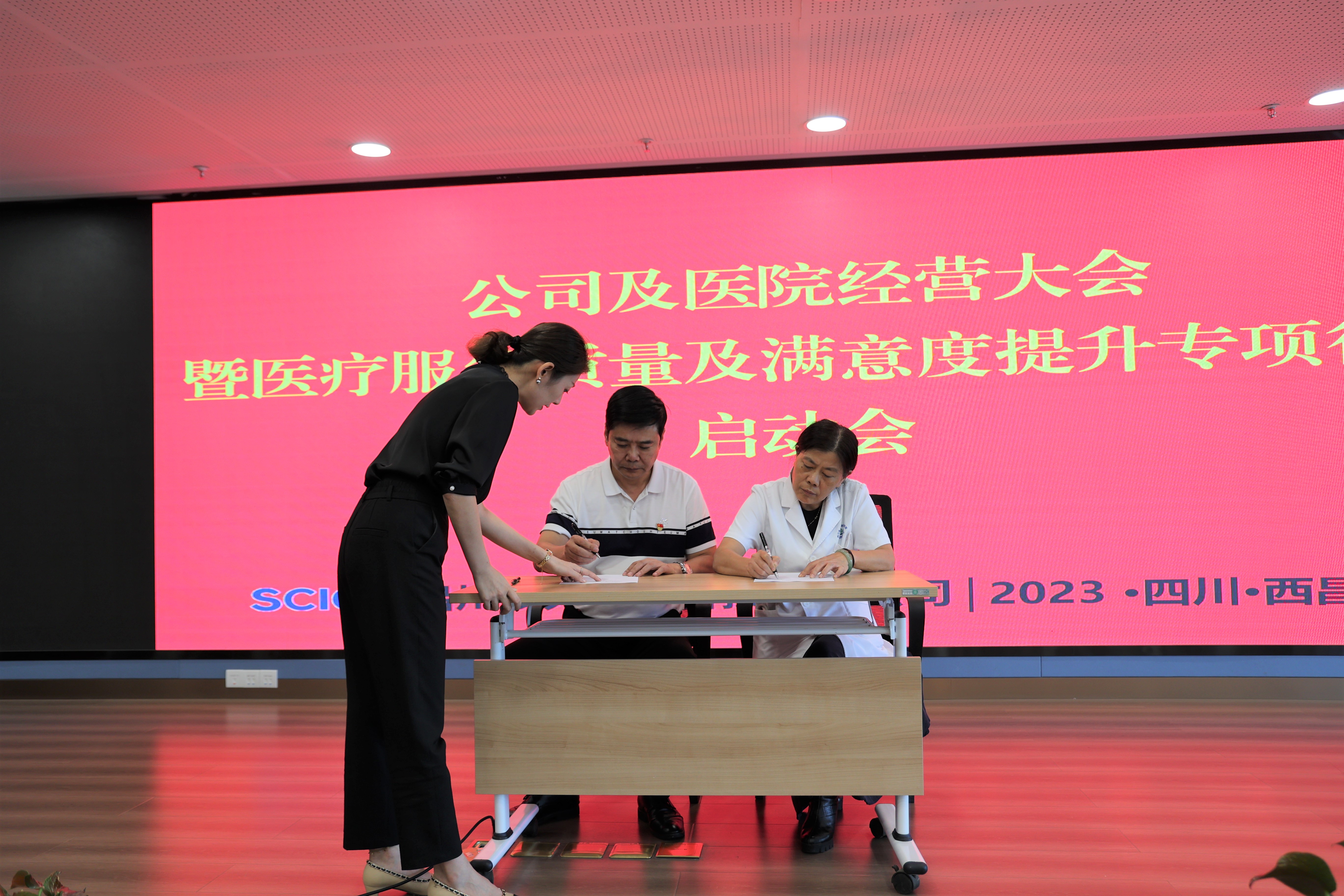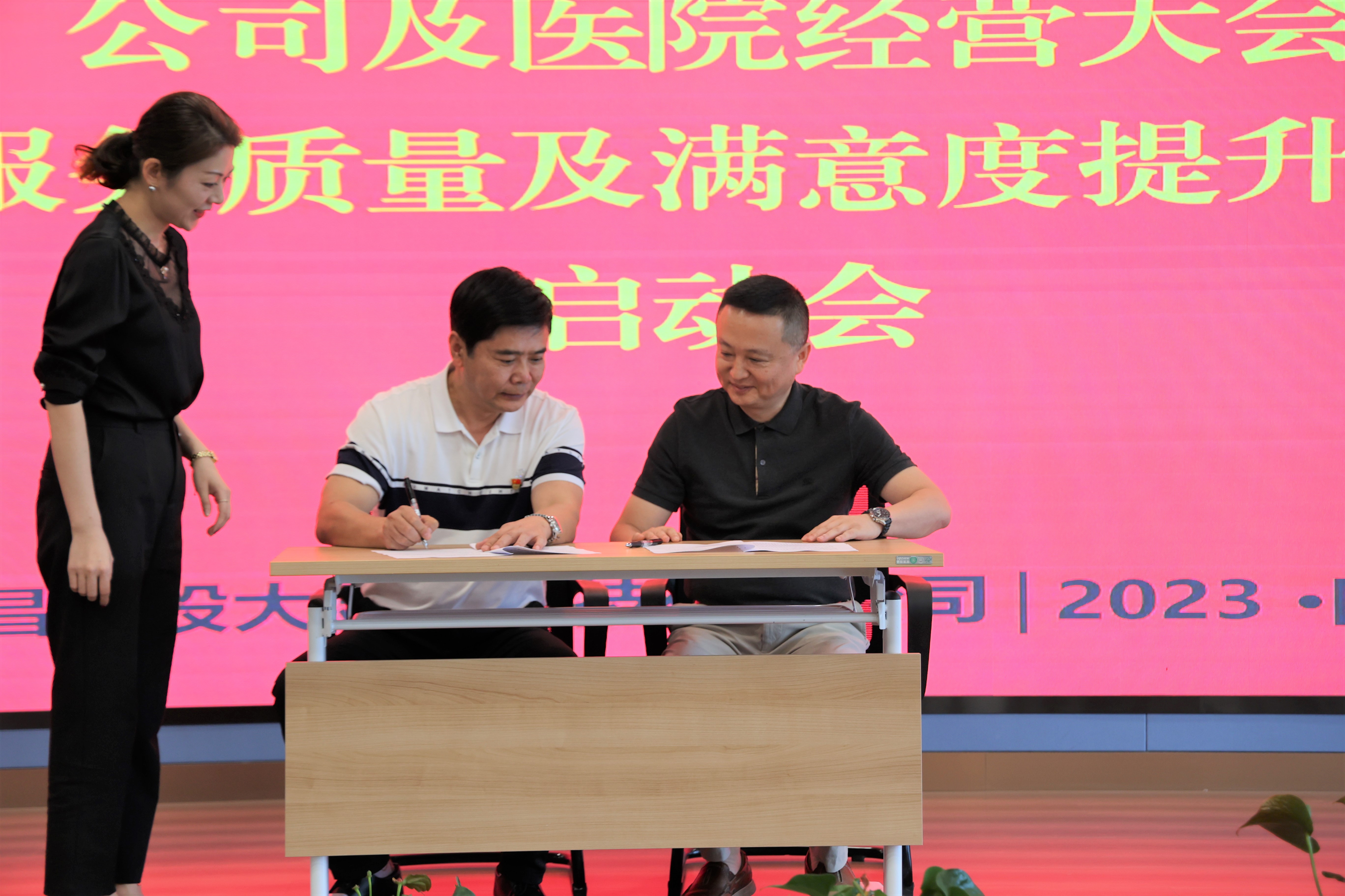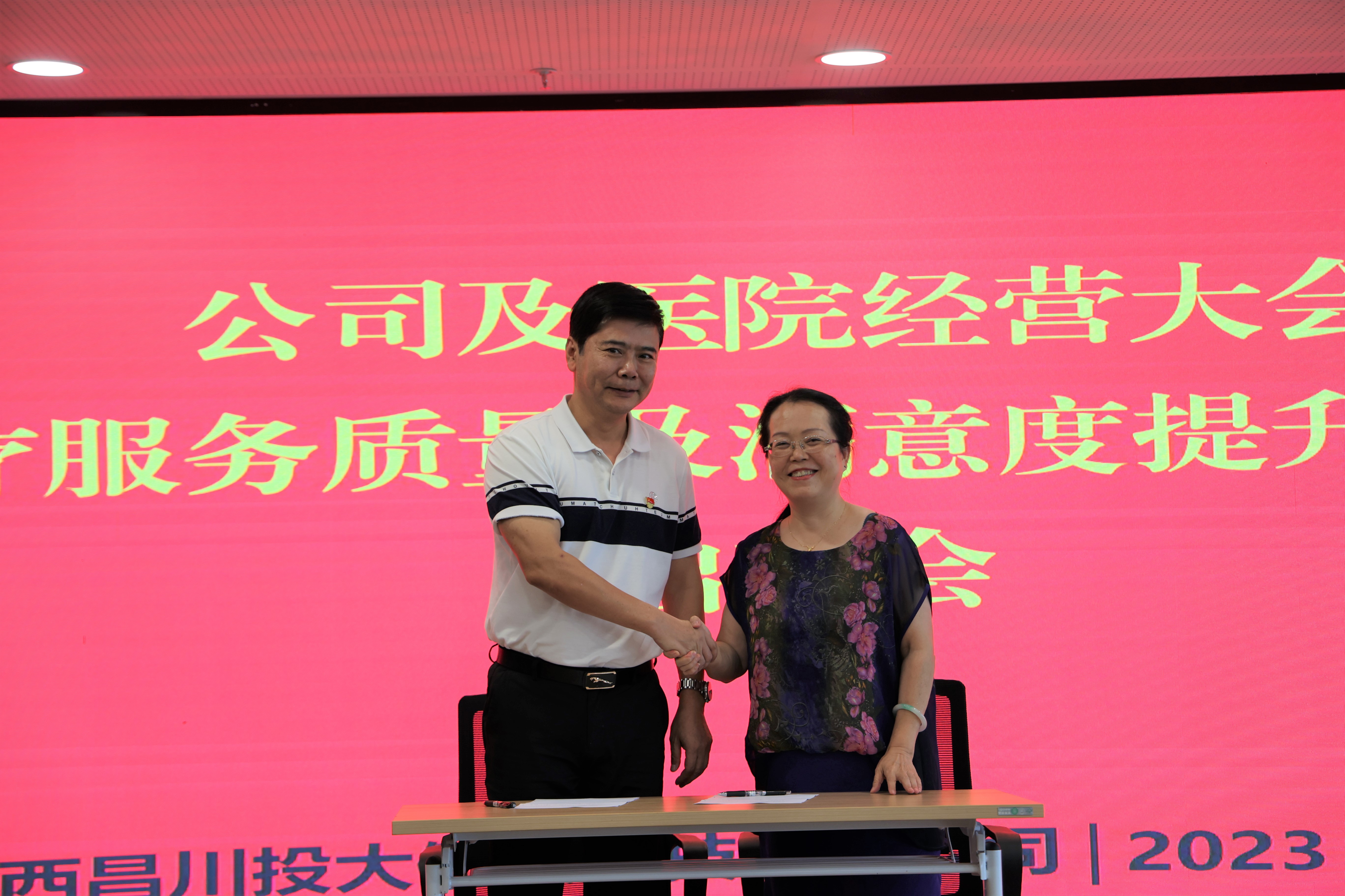 為進一步提升患者就醫(yī)滿意度,優(yōu)化服務(wù)流程,提高醫(yī)療質(zhì)量,在醫(yī)療服務(wù)質(zhì)量和患者滿意度雙提升上實現(xiàn)新突破,2023年8月23日,公司組織召開“經(jīng)營大會暨醫(yī)療服務(wù)質(zhì)量及滿意度提升專項行動啟動會”,公司及醫(yī)院領(lǐng)導(dǎo)、除值班外的全體員工參會。