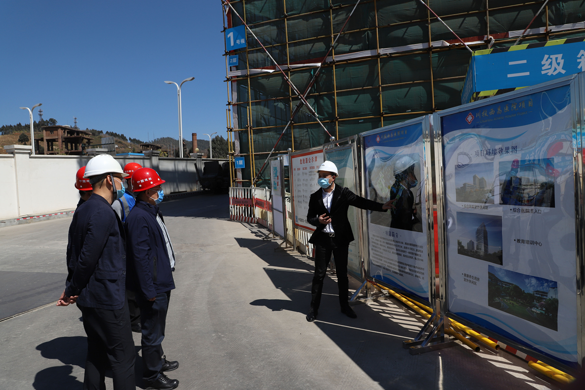 2020年3月7日,省國資委黨委委員、副主任沈汝源一行到川投西昌醫(yī)院項目檢查指導(dǎo)安全環(huán)保工作,并就做好疫情防控和企業(yè)復(fù)工復(fù)產(chǎn)等工作進(jìn)行指導(dǎo)。川投西昌大健康公司副總經(jīng)理李剛、龔堅及各參建單位相關(guān)人員陪同調(diào)研。