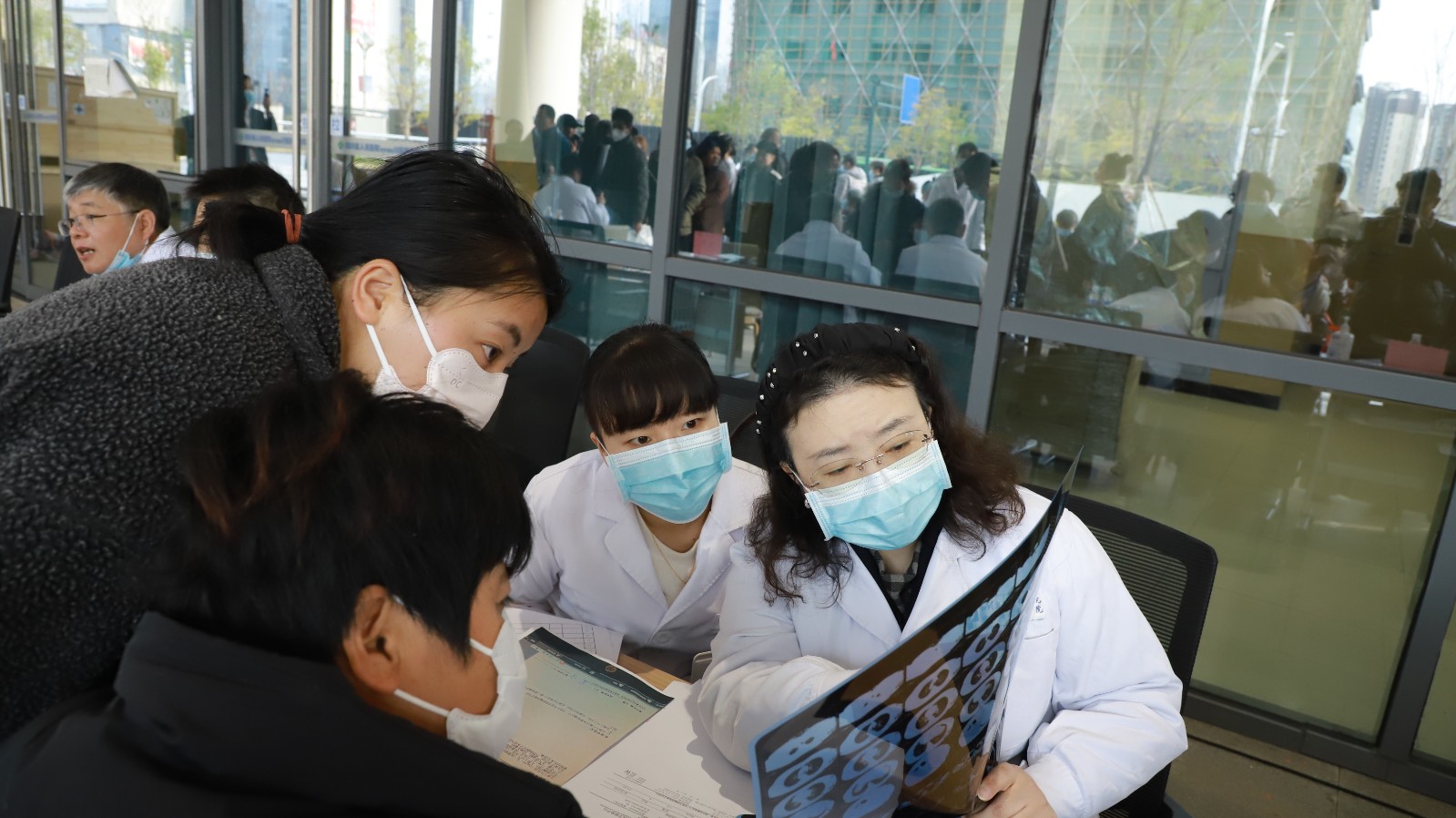 一大早,百余名醫(yī)護(hù)人員和后勤保障人員早早就位,八點(diǎn)義診準(zhǔn)備工作已就緒,不一會(huì)兒,醫(yī)院南廣場就排起了長隊(duì)。面對群眾迫切的需求,省人民醫(yī)院專家團(tuán)隊(duì)不顧舟車勞頓,與我院專家團(tuán)隊(duì)立刻投入到緊張有序的義診工作當(dāng)中。專家們耐心、細(xì)致地詢問患者的病情,查看病情相關(guān)資料,給出專業(yè)的疾病診療意見,同時(shí)對患者提出的問題及相關(guān)健康咨詢逐一給予詳細(xì)解答,得到了患者及家屬的一致好評。